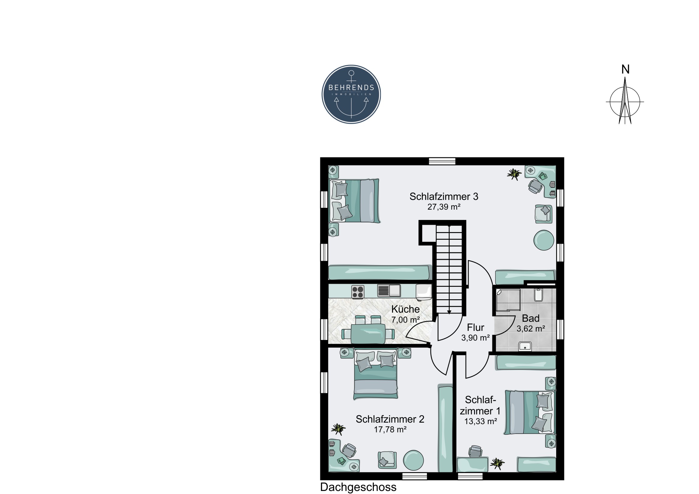 Ergänzt wird diese Etage durch eine zweite Küche sowie ein weiteres Duschbadezimmer, wodurch auch eine getrennte Nutzung der Etagen möglich ist.