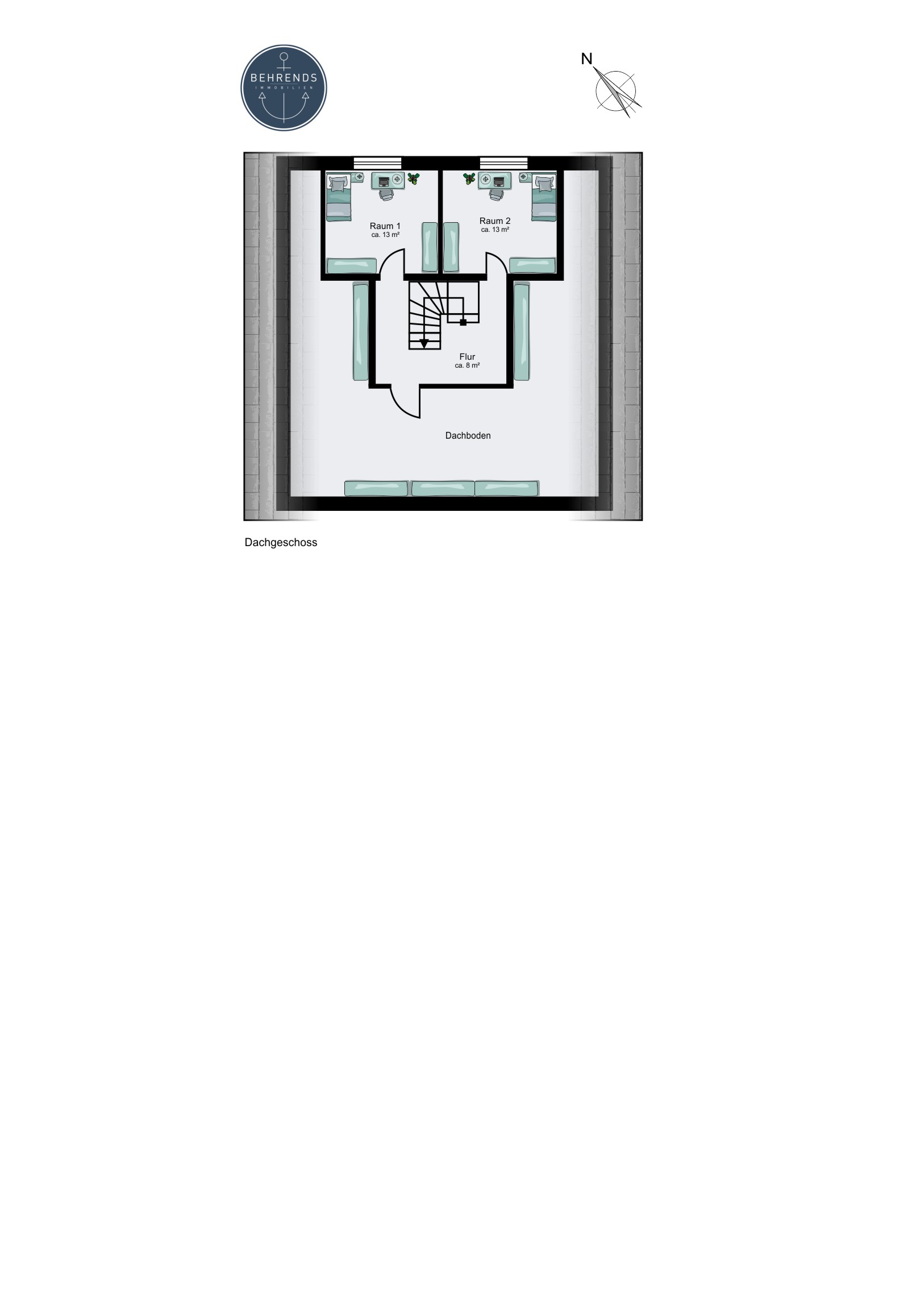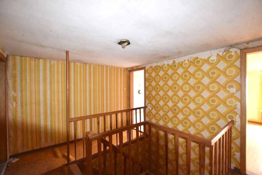 Das Obergeschoss ist teilweise ausgebaut und bietet einen Flur und zwei zusätzliche Räume. Die Dachbodenfläche ist ausbaufähig. Aufgrund der Deckenhöhe sind diese Räumlichkeiten nicht in der Wohnfläche enthalten.